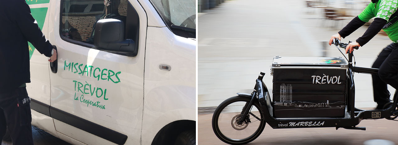 A Trèvol vam iniciar la nostra activitat oferint als clients servei de missatgeria sobre rodes, convertint-nos en la primera empresa de l’estat espanyol a proporcionar aquest servei en bicicleta. El nostre model empresarial cooperatiu esdevé ben aviat un referent de l’Economia Social i Solidària amb voluntat transformadora.